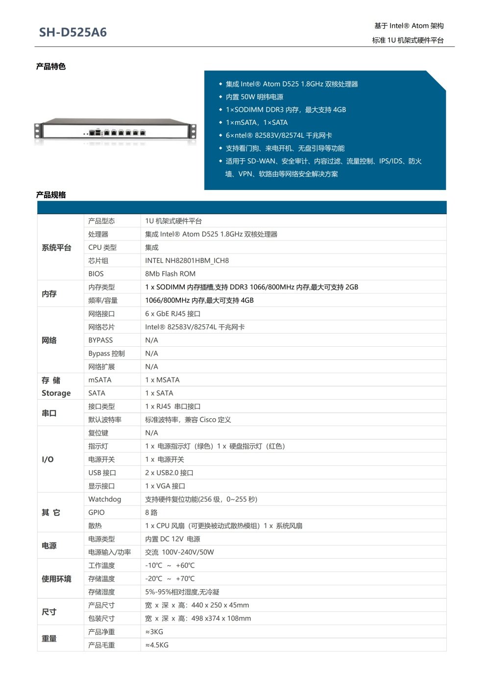 SH-D525A6 SD-WAN1U机架式硬件平台